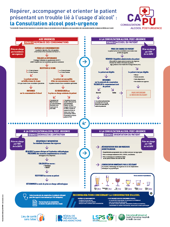 Orientation : en fonction des résultats et des critères établis, le patient est orienté vers la Consultation alcool post-urgence (CAPU).
