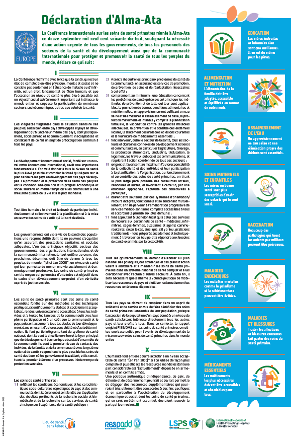 Les Standards internationaux du réseau HPH, adaptés en France par le RESPADD : ils fournissent un cadre méthodologique pour accompagner les hôpitaux et autres Lieux de santé dans la mise en œuvre concrète des actions de promotion de la santé.