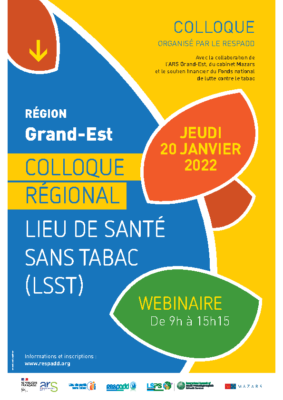 Le RESPADD, en collaboration avec l’ARS Grand-Est et le cabinet Mazars, a eu le plaisir d'organiser le colloque régional Lieu de santé sans tabac le 20 janvier 2022 en format webinaire de 9h à 15h15.